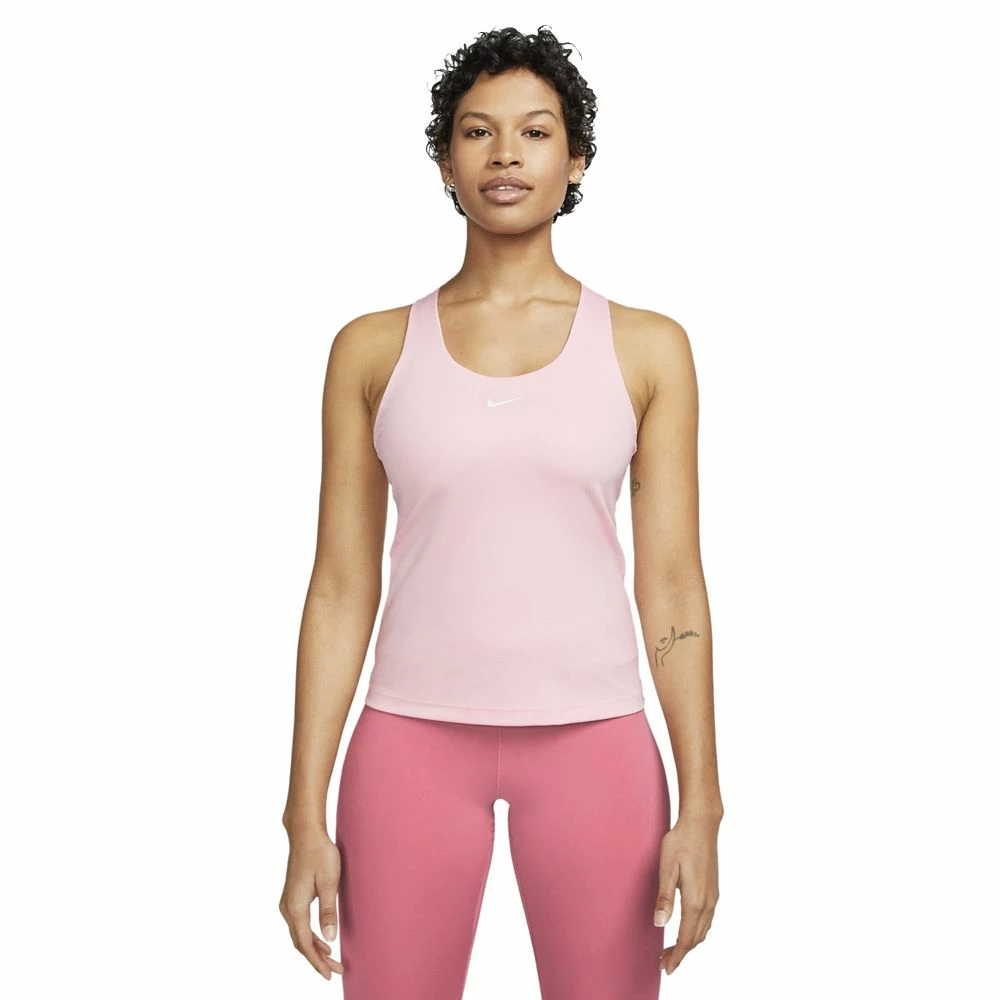 When you want it all, this women’s Nike tank is the pick. The iconic Swoosh bra is built in and smooth, stretchy fabric snuggly holds you, so you’re set with everything you need to go from the office to the gym and back again.