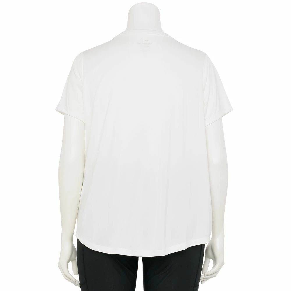 Turn up the heat in this women’s Nike Dri-FIT tee. Fabric wicks sweat away so you can focus on your form.