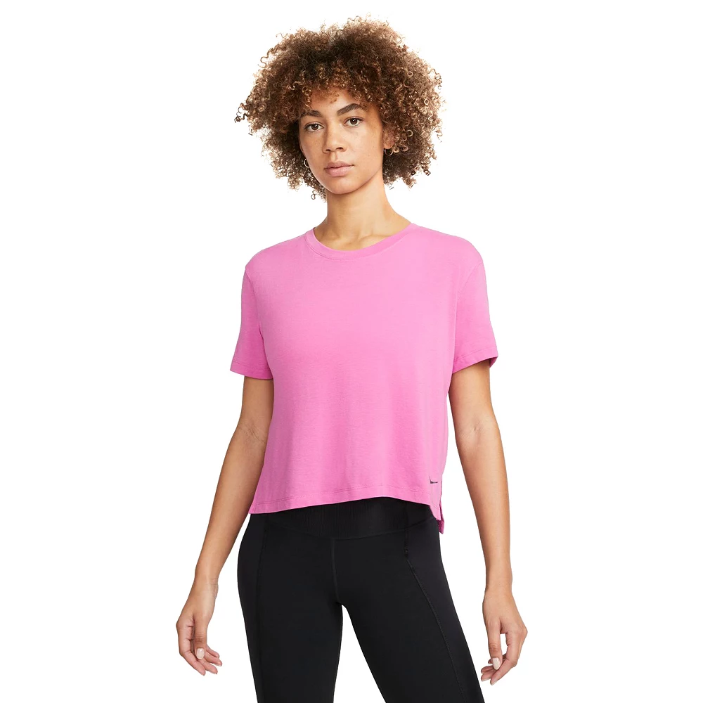 Made with soft, stretchy sweat-wicking fabric, this women’s Nike Yoga top is a breathable layer designed to keep you comfortable while you flow through your movements.
