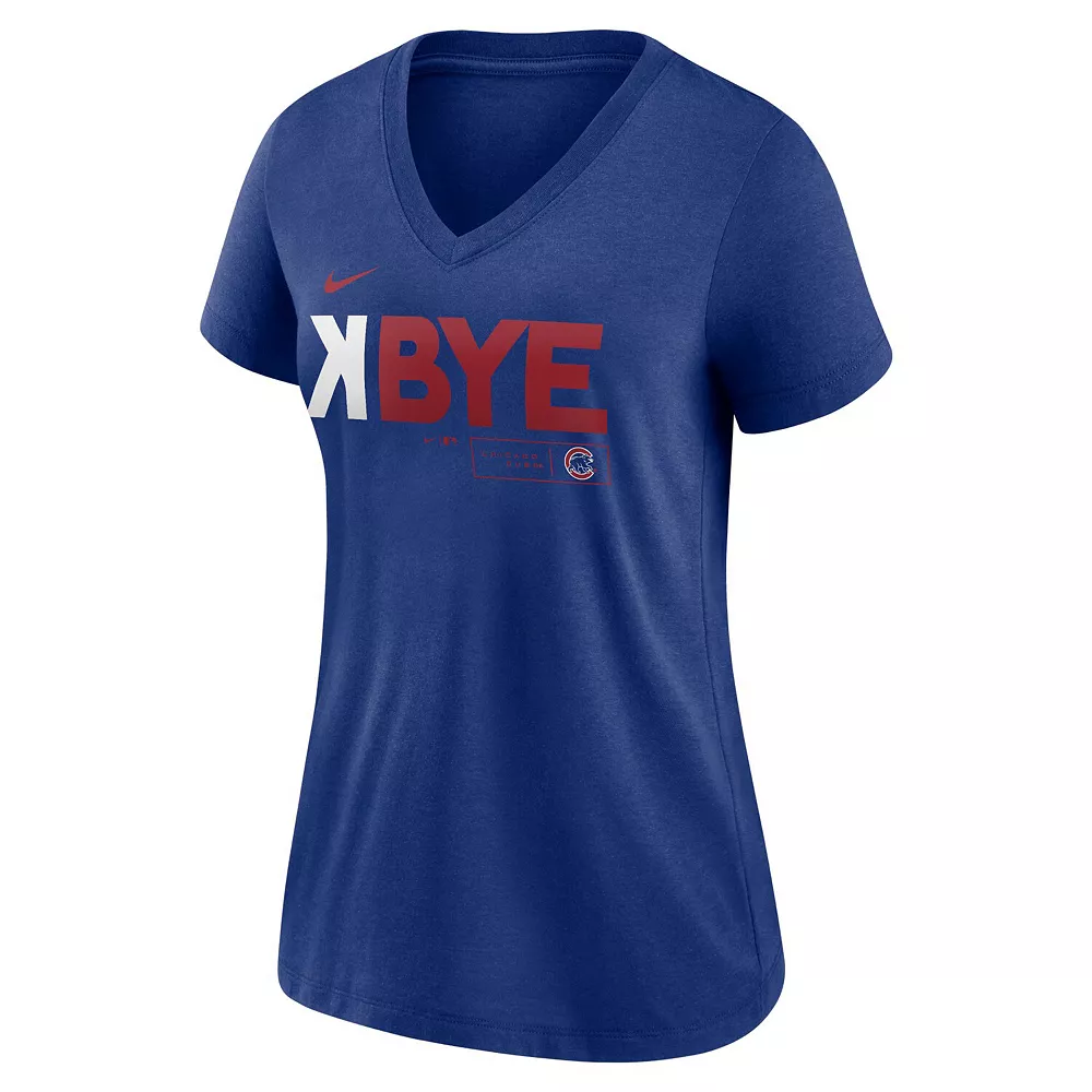 Tell all rivals of the Chicago Cubs how you really feel when you sport this K-Bye T-shirt from Nike. While three fabric types work together to bring you lightweight comfort, the V-neck design offers a classic look. Best of all, the bold Chicago Cubs graphics ensure everyone knows your competitive side is out to play on game day.