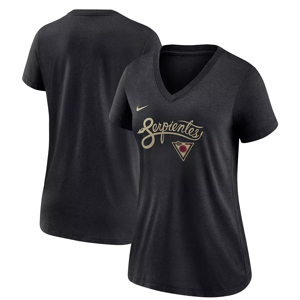Show off your die-hard Arizona Diamondbacks fandom with this 2021 City Connect Tri-Blend V-Neck T-Shirt. This special Nike gear highlights the team’s snake design, featuring a Serpientes wordmark. The bold team graphics will ensure everyone knows where your allegiance lies.
