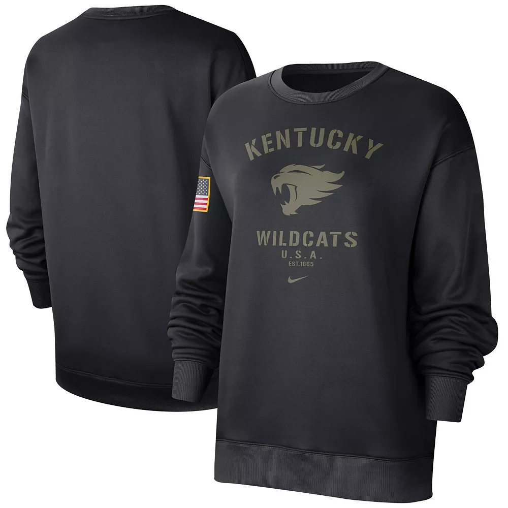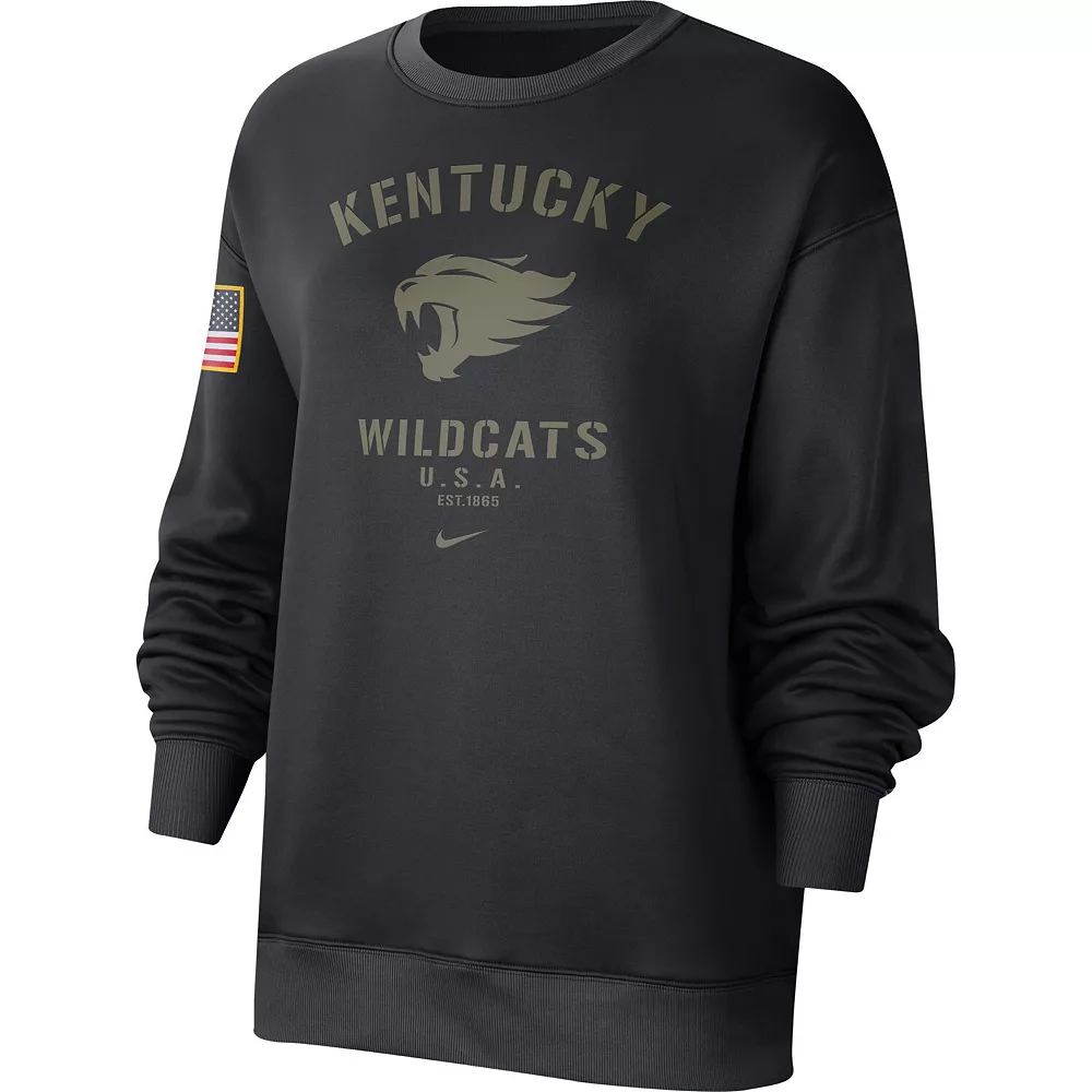 Add a patriotic touch to your Kentucky Wildcats game day look with this Military Appreciation Therma Performance All-Time Pullover Sweatshirt. The Nike Therma technology is essential for staying comfortable as the temperatures drop. Complete with an American flag patch and military-inspired graphics, this will be your go-to top for showcasing your Kentucky Wildcats and American pride.
