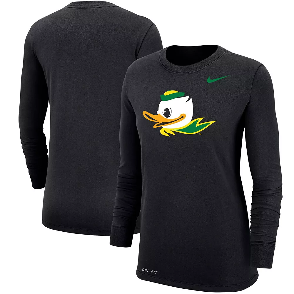 Expand your collection of casual, cool-weather Oregon Ducks tees with this Logo T-shirt from Nike. It features large Oregon Ducks graphics printed across the front, making your favorite team easily noticeable. The moisture-wicking Dri-FIT technology and Nike Dry fabrics designed to evaporate away sweat faster will help keep you feeling comfortable, as well.