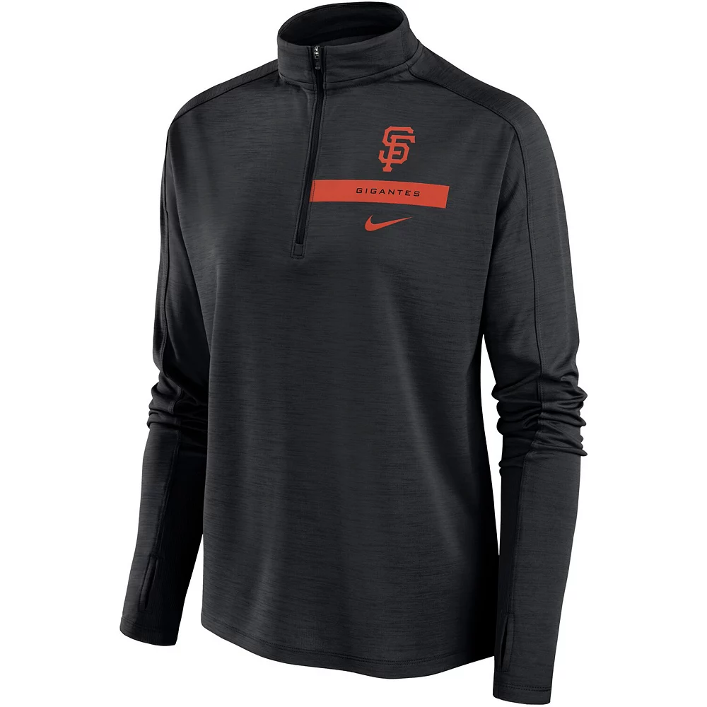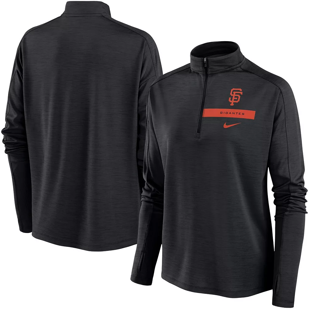 Layer up as you cheer on the San Francisco Giants with this Nike Primetime quarter-zip top. It features raglan sleeves for easy motion, and moisture-wicking Dri-FIT technology. Designed for fashion and function, this pullover is complete with stylish San Francisco Giants graphics and thumbholes.