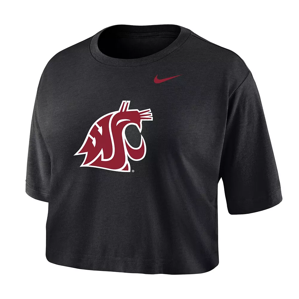 Enhance your Washington State Cougars style with this Cropped T-shirt from Nike. Its large Washington State Cougars logo printed across the front ensures your favorite college team doesn’t go unnoticed. Additionally, built-in Dri-FIT technology wicks away moisture to keep you feeling cool and comfortable.