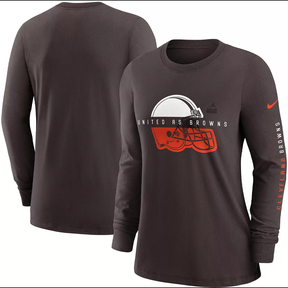 Stave off chilly weather with a spirited display of your Cleveland Browns pride in this Prime Split T-shirt from Nike. It features striking Cleveland Browns graphics on the chest and sleeve that leave no doubt about your devotion to the squad. Plus, cozy long sleeves and a classic design make it perfect to pair with your other cool-weather gear.