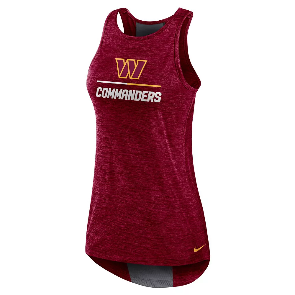 Show off your Washington Commanders spirit at the gym or on a run with this tank top from Nike. Designed with moisture-wicking Dri-FIT technology and a breathable back mesh panel, this shirt is perfect for active days. Plus, the stylish high neck and Washington Commanders details make it an ideal pick for spirited game days.