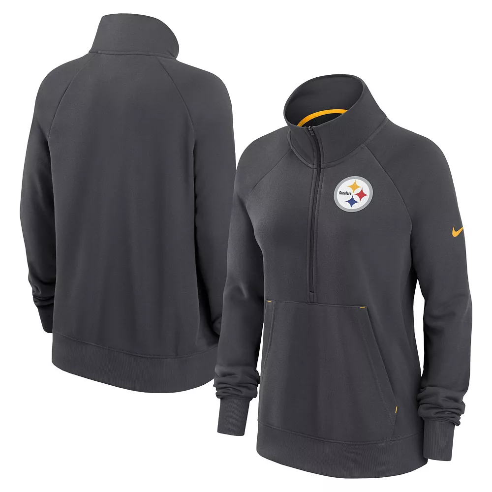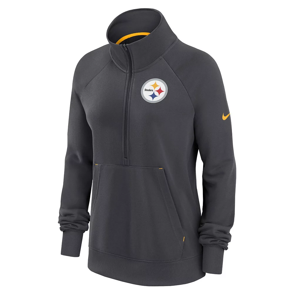 Upgrade your usual sweatshirt with this Pittsburgh Steelers Premium half-zip design by Nike. It features moisture-wicking Dri-FIT technology to keep you feeling dry and raglan sleeves that create some extra arm room for more flexible movement. The understated Pittsburgh Steelers graphics and solid fabric also make this a versatile piece of outerwear to have in your wardrobe.