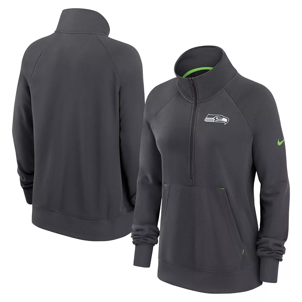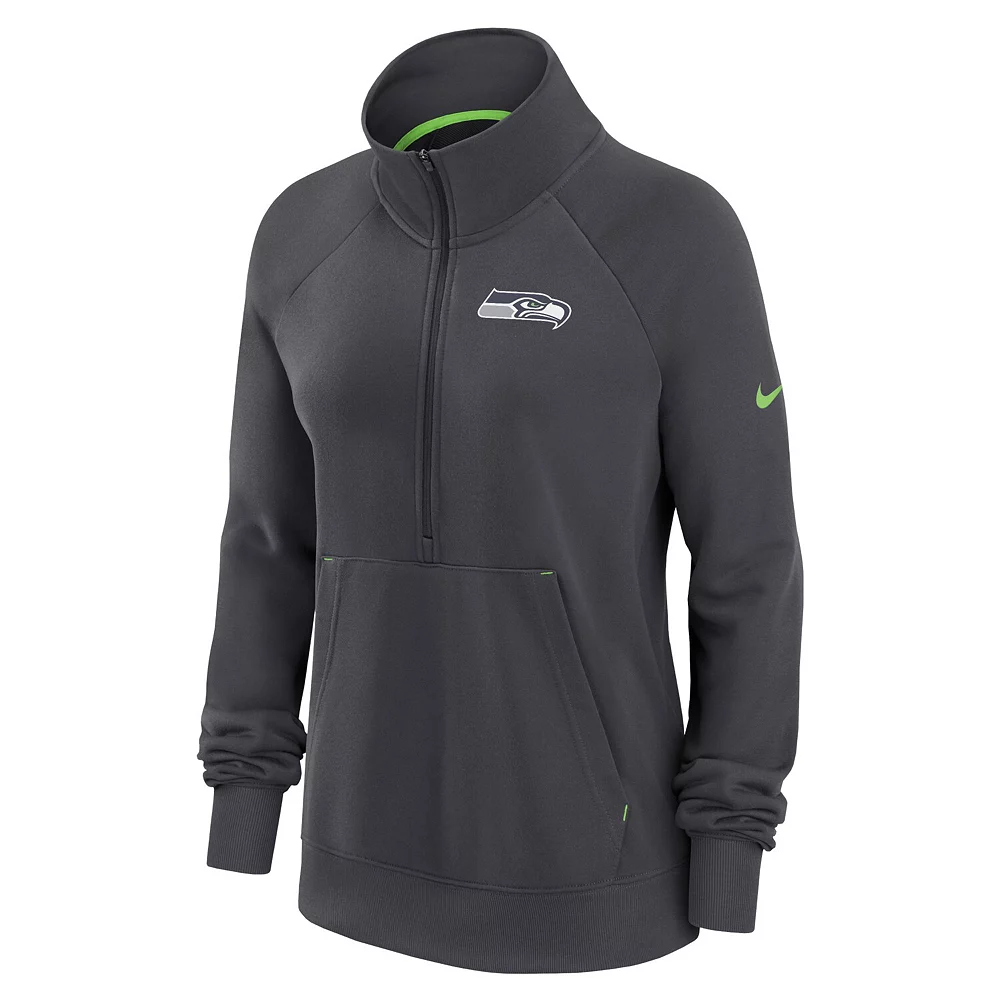 Upgrade your usual sweatshirt with this Seattle Seahawks Premium half-zip design by Nike. It features moisture-wicking Dri-FIT technology to keep you feeling dry and raglan sleeves that create some extra arm room for more flexible movement. The understated Seattle Seahawks graphics and solid fabric also make this a versatile piece of outerwear to have in your wardrobe.