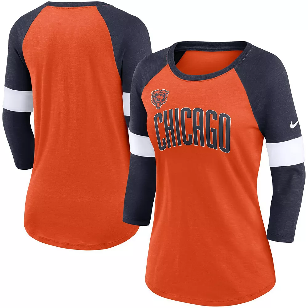 Put eyes on your Chicago Bears pride with this Nike Football 3/4-sleeve T-shirt. Roomy raglan sleeves and blended fabric make for the ultimate casual feel. In addition, signature Chicago Bears graphics and colors let everyone know who you cheer for on game day.