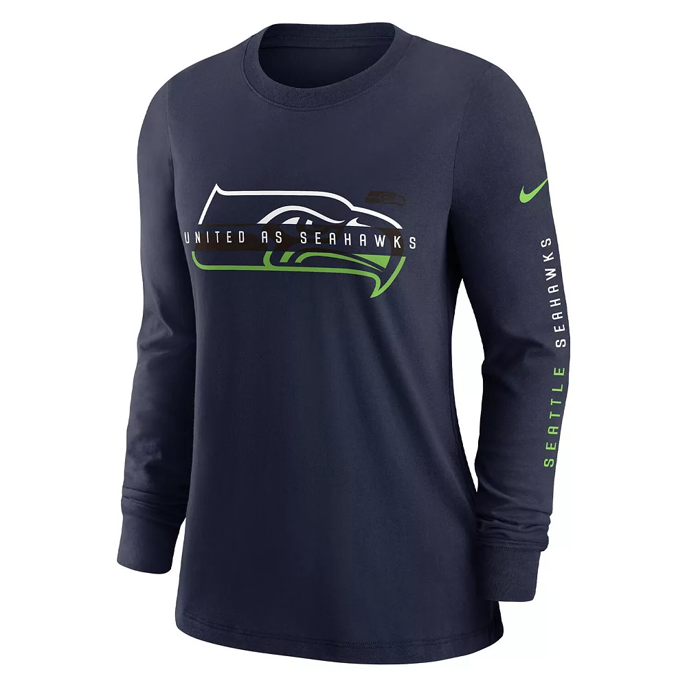 Stave off chilly weather with a spirited display of your Seattle Seahawks pride in this Prime Split T-shirt from Nike. It features striking Seattle Seahawks graphics on the chest and sleeve that leave no doubt about your devotion to the squad. Plus, cozy long sleeves and a classic design make it perfect to pair with your other cool-weather gear.