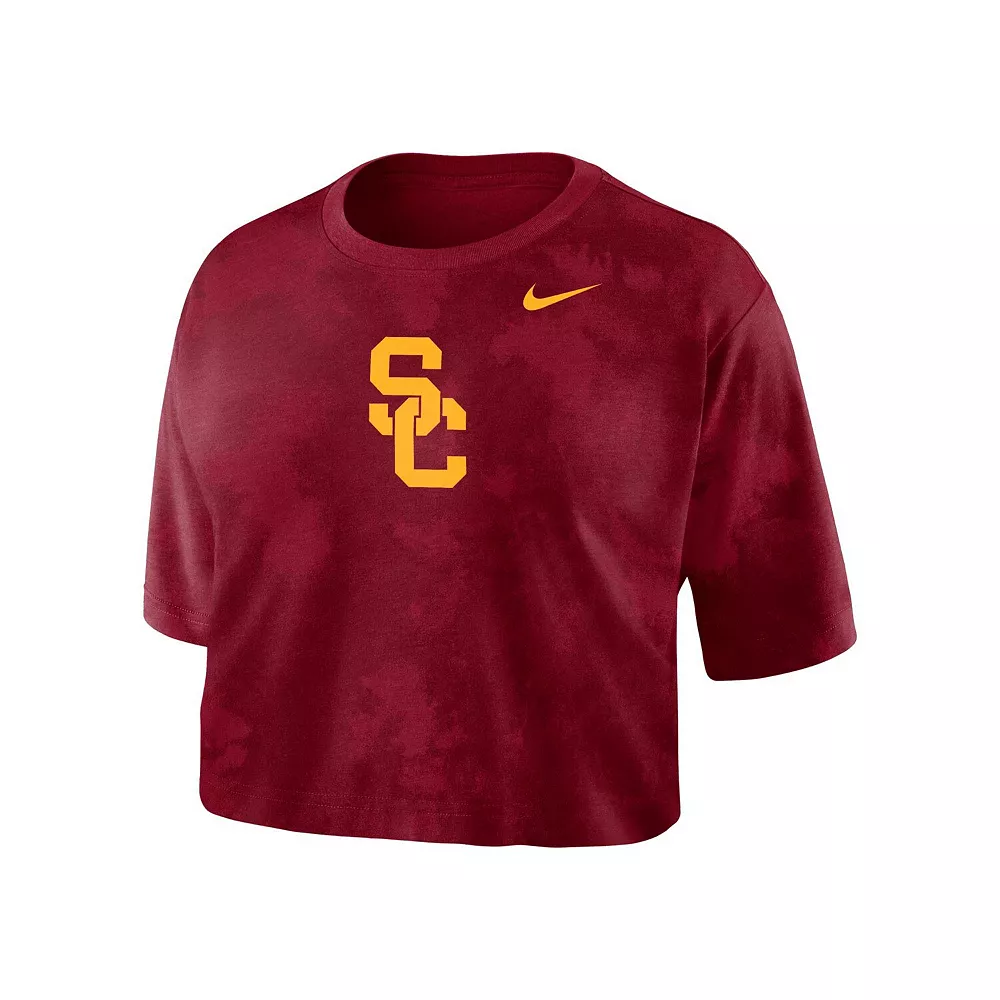 Flex your USC Trojans spirit in a charming fashion with this Cropped T-shirt from Nike. The allover tie-dye pattern coordinates with the bold USC Trojans graphics for a chic, spirited look. Plus, the loose fit allows the top to rest comfortably at the shoulders and waist for a cozy feel.