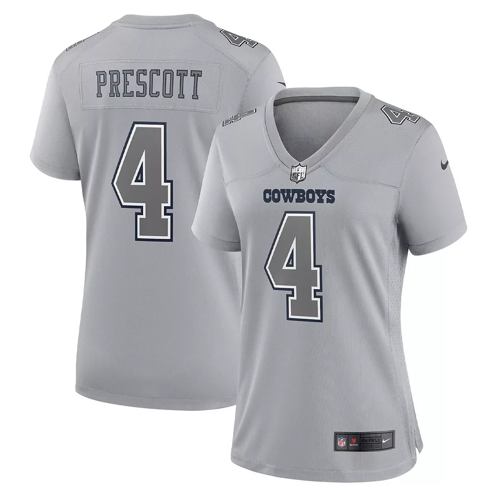 Up your Dallas Cowboys look with this Dak Prescott Atmosphere Fashion Game jersey by Nike. Its tailored fit is designed for movement, and mesh side panels ensure you stay cool and comfortable all day long. Authentic team details with a unique color palette make this replica jersey a standout piece in your Dallas Cowboys collection.