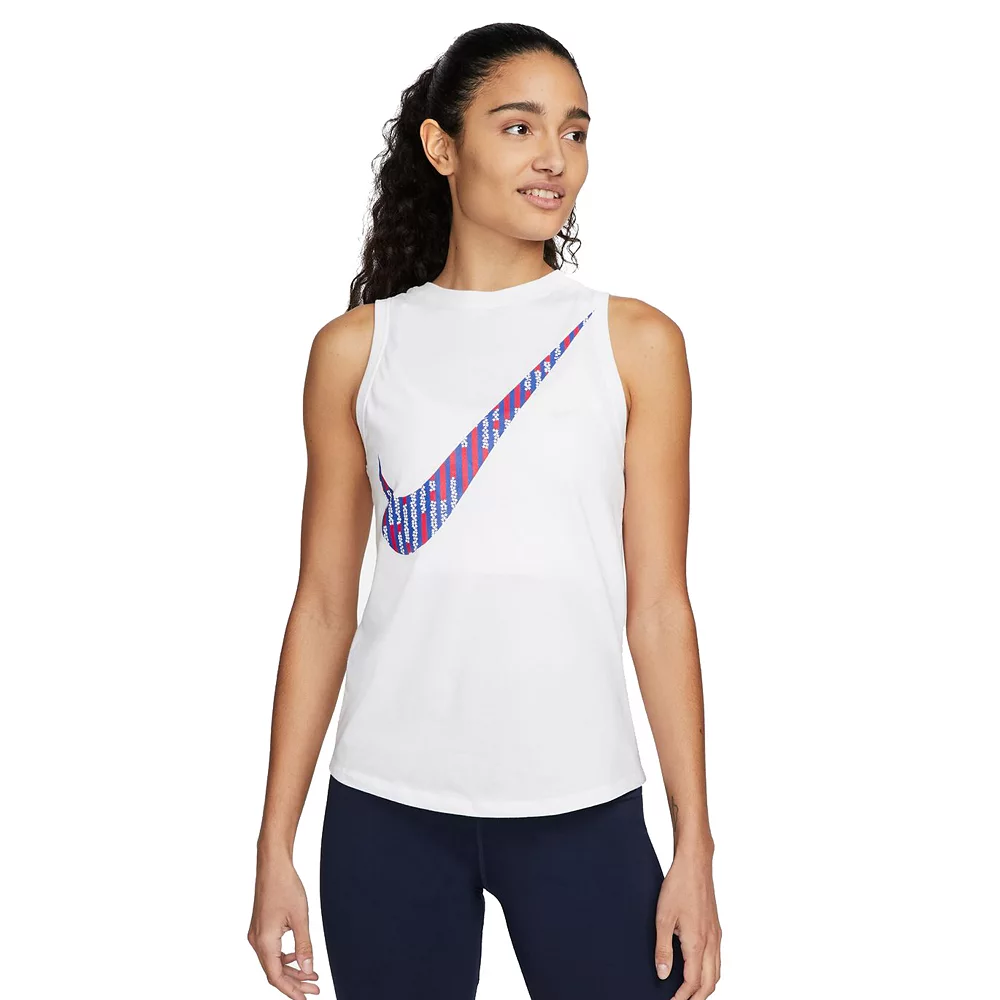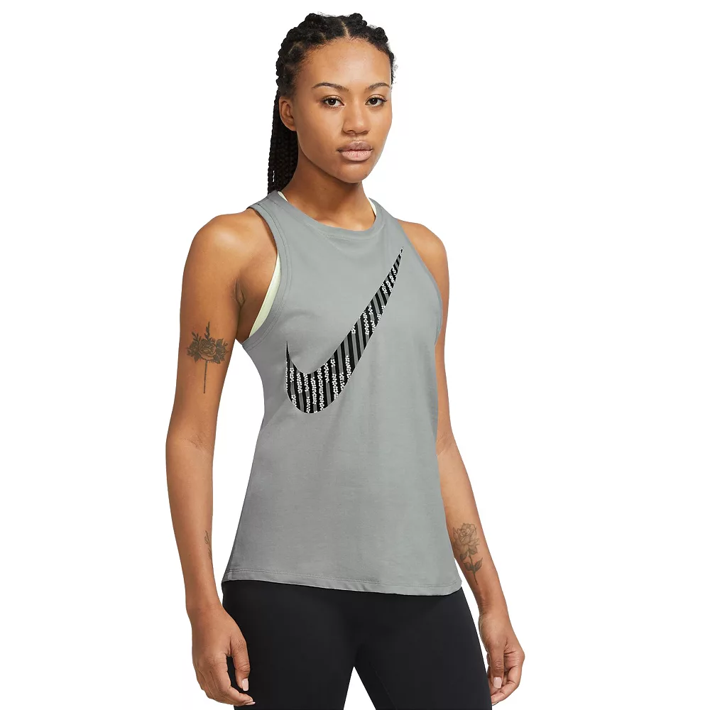 This women’s Nike Dri-FIT tank top keeps you dry and comfortable from warmups through cool downs with soft fabric that wicks sweat.