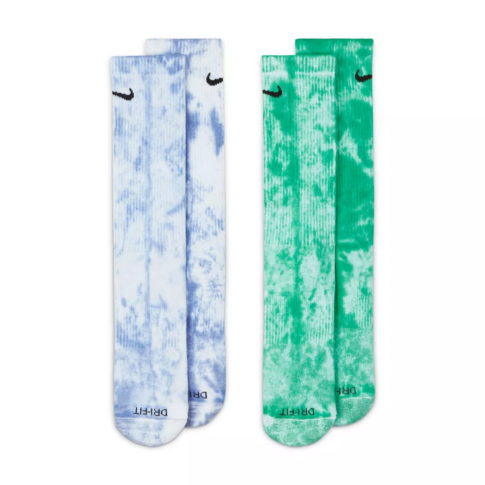 A true hybrid of style and comfort, these women’s Nike Everyday Plus crew socks are cushioned in keys areas to keep you comfortable throughout the day. Dri-FIT fabric and breathable mesh at the top of your foot help keep your feet feeling cool and dry while an arch band provides a snug fit.