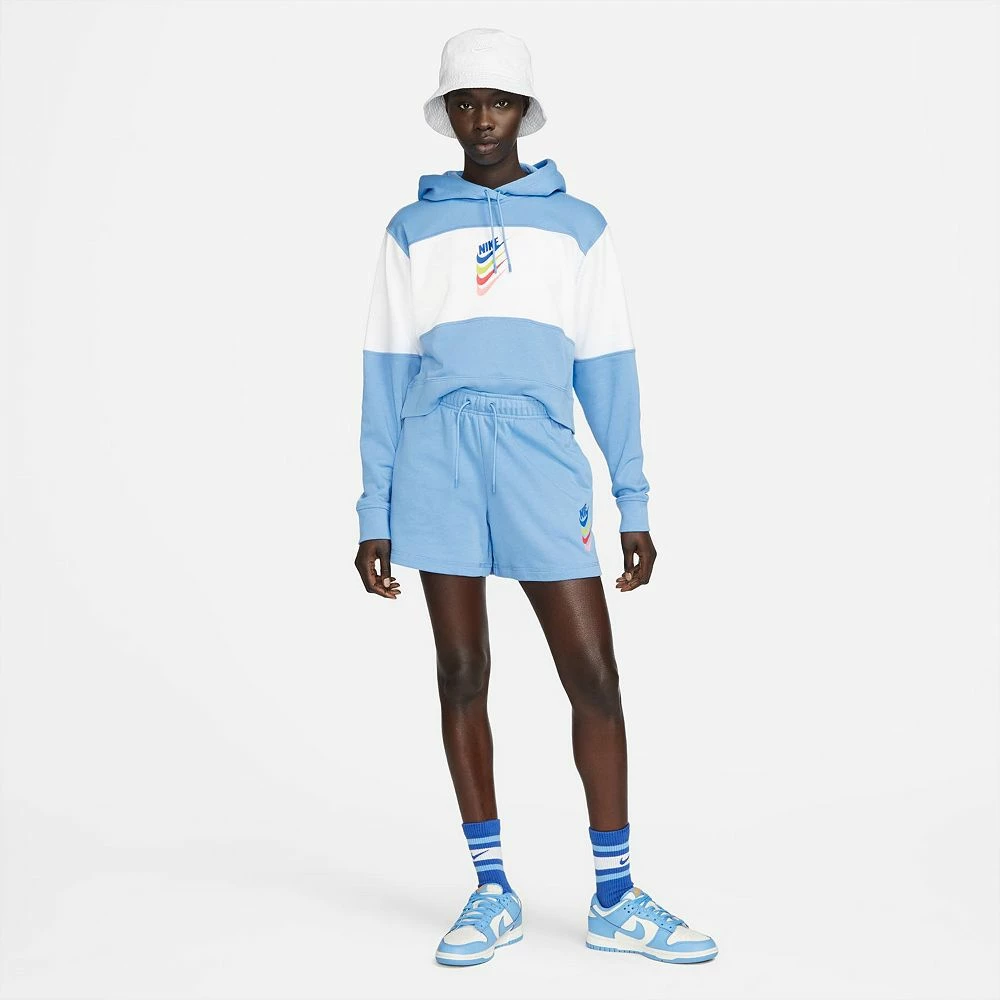 Gym class vibes. Inspired by heritage Nike track styles, these Nike women’s shorts are an easy win when you’re on the run. Their soft brushed fleece construction and mid-rise fit pair well with sunshine and your favorite cropped tees.