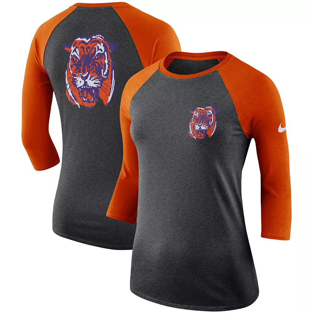 Make your fandom stand out when you put on this Clemson Tigers Dri-FIT tri-blend 3/4-sleeve raglan T-shirt from Nike.