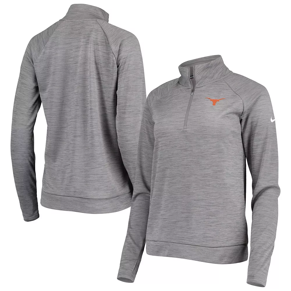 On cooler days, stay perfectly warm in this Texas Longhorns Pacer Space Dye quarter-zip jacket from Nike. It features Nike Dry fabrics with moisture-wicking Dri-FIT technology to help keep you comfortable. The raglan sleeves also add a little extra room for more flexible movement while wearing this Texas Longhorns jacket.