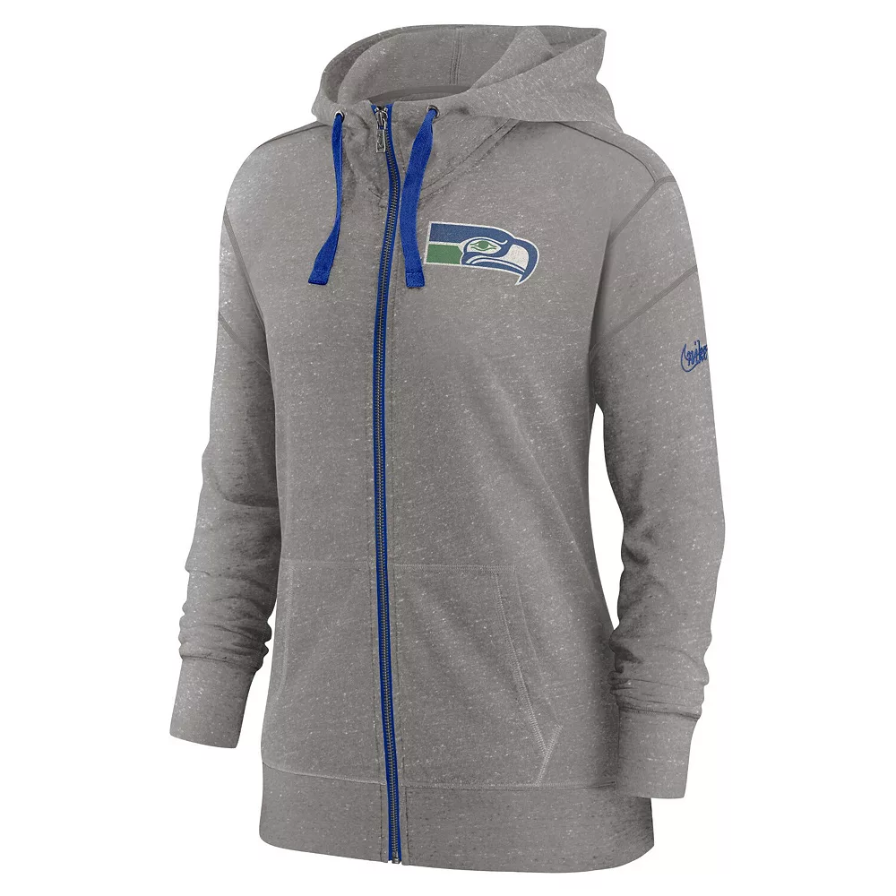 Layer up as you enjoy watching your Seattle Seahawks in this Gym Vintage full-zip hoodie from Nike. The front pockets keep your essentials protected, while the lightweight design offers the perfect amount of warmth and breathability. Plus, the classic Seattle Seahawks graphics make it easy to see who you root for on game day.