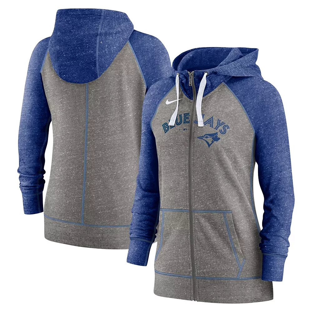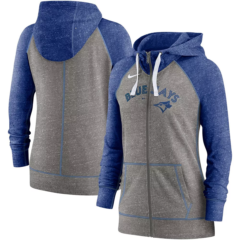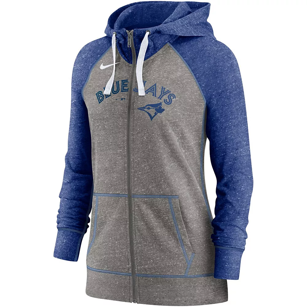Layer up with this Split Wordmark Gym Vintage full-zip hoodie from Nike. Designed with raglan sleeves for extra movement, this lightweight hoodie is great for staying comfortable in any condition. The distinctive Toronto Blue Jays details put your loyalty front and center for all to see.