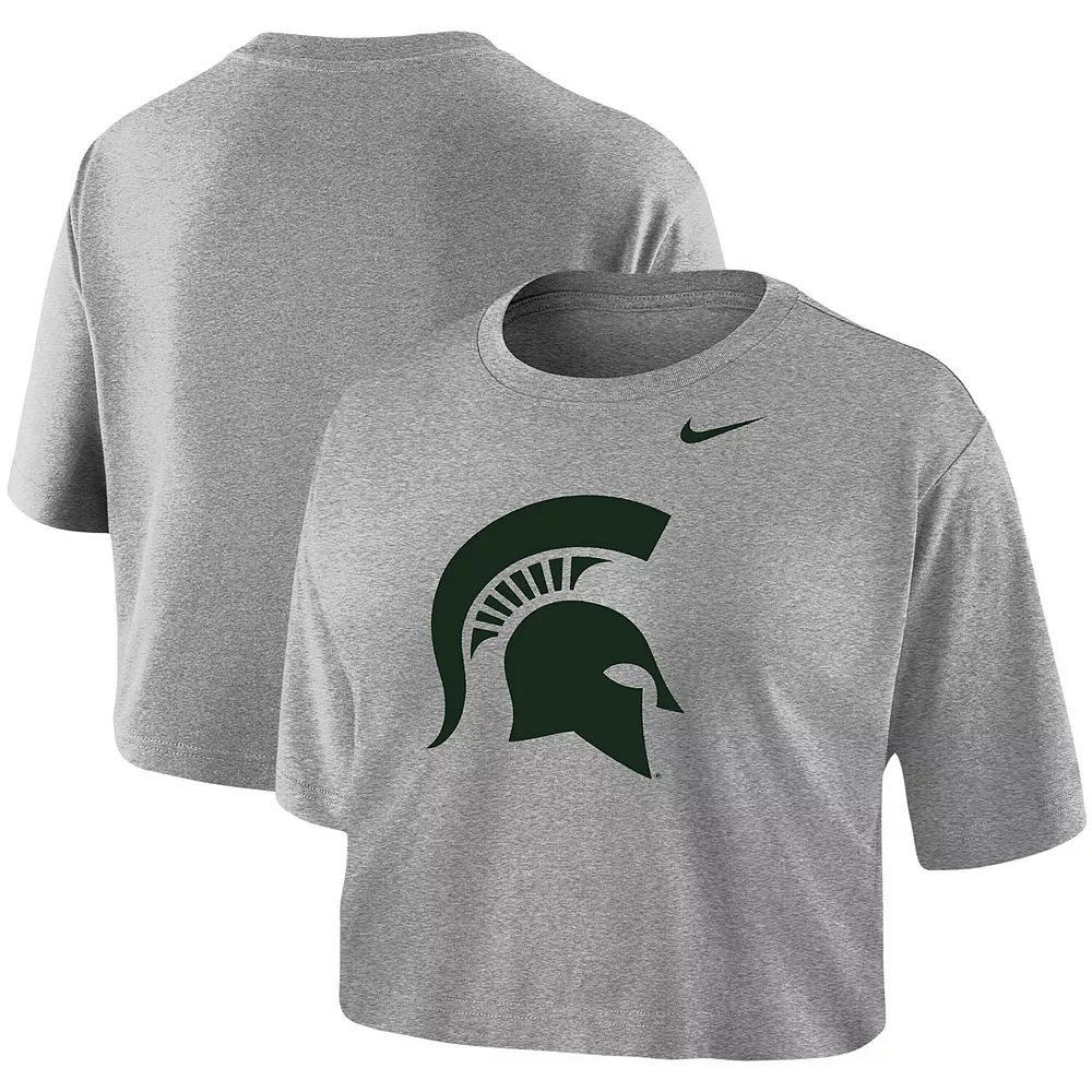 Enhance your Michigan State Spartans style with this Cropped T-shirt from Nike. Its large Michigan State Spartans logo printed across the front will ensure your favorite college team doesn’t go unnoticed. Additionally, built-in Dri-FIT technology will wick away moisture to help keep you feeling cool and comfortable.