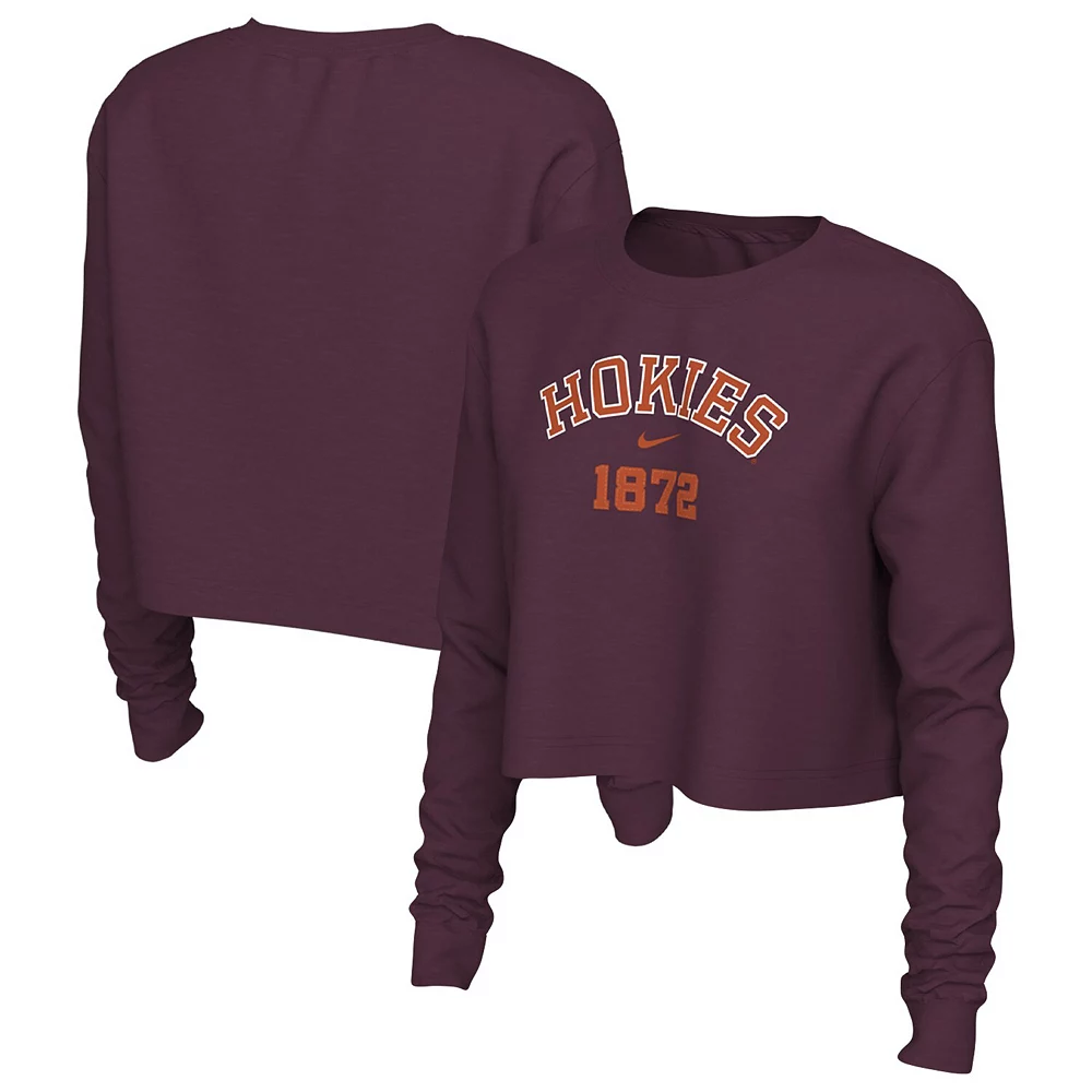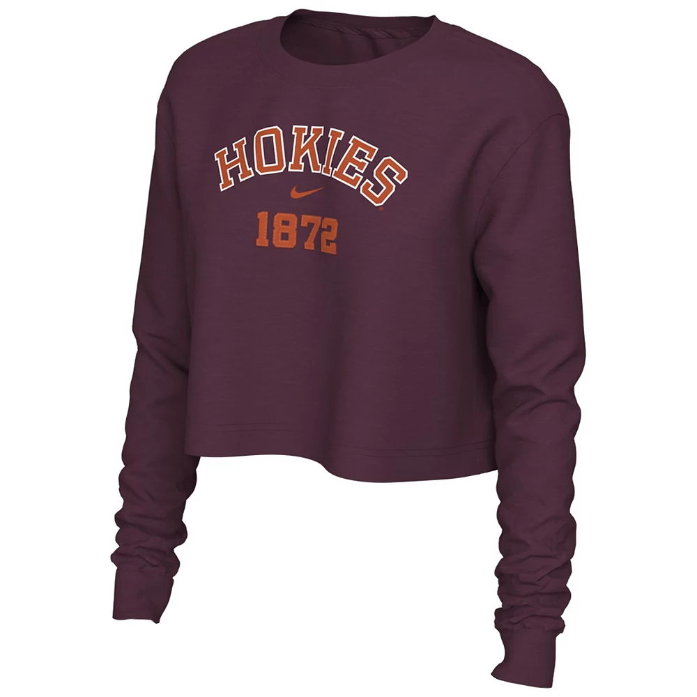 Grab a tee that makes you feel as good as watching your Virginia Tech Hokies with this Nike Est. cropped T-shirt. Soft cotton fabric and an oversized fit allow for easy movements and comfort. Bold Virginia Tech Hokies graphics complete this top for a trendy piece of fan gear.