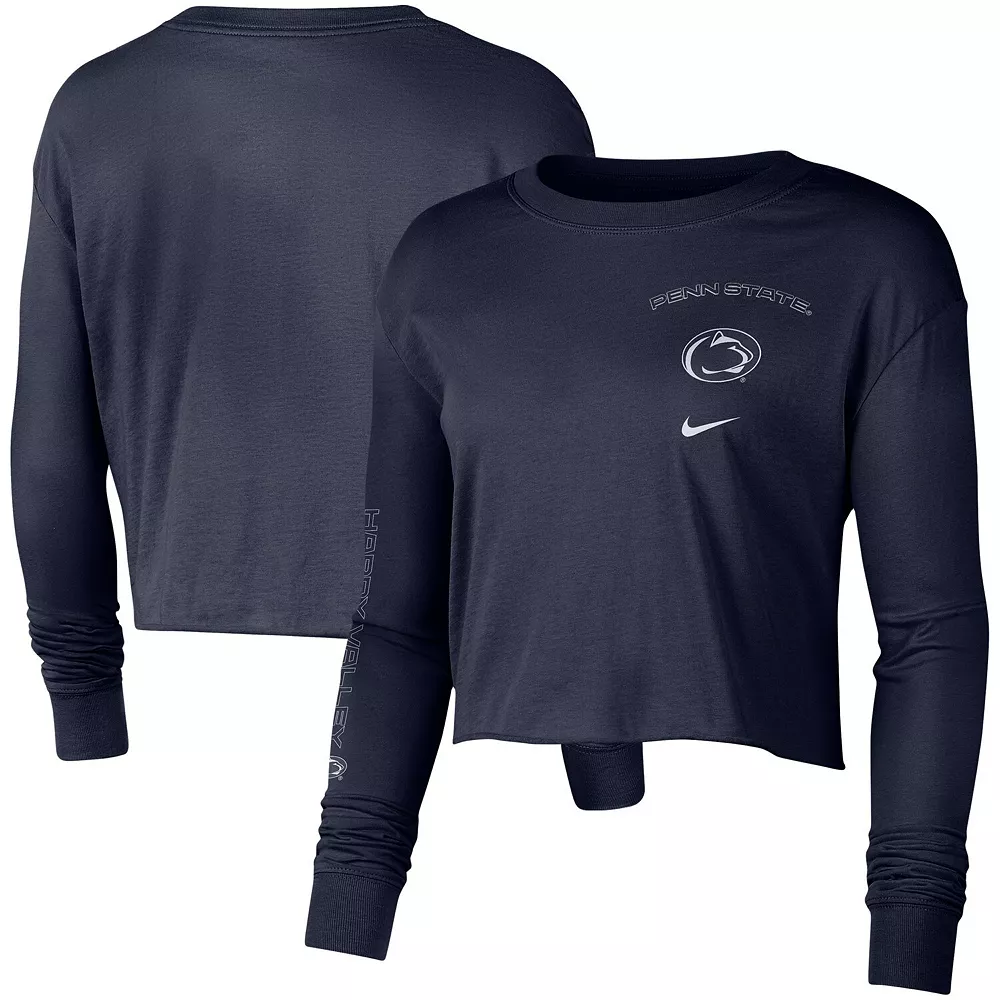 Beat the heat with a trendy display of your Penn State Nittany Lions pride in this Cropped 2-Hit T-shirt from Nike. This summertime top features bold team graphics and colors that leave no doubt about your commitment to the team. Reach for this distinct shirt and show that your Penn State Nittany Lions spirit doesn’t falter in warmer temperatures.