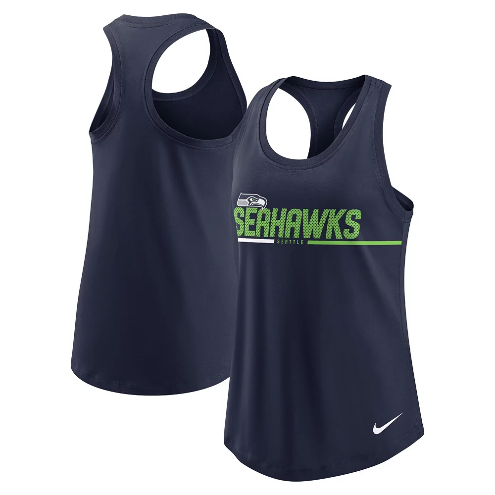 When temperatures heat up, keep cool in new Seattle Seahawks gear with this tri-blend Nike tank top. It features the team name and logo printed above the city where the Seattle Seahawks call home. A racerback and scoop neck also create that classic tank top look and feel.