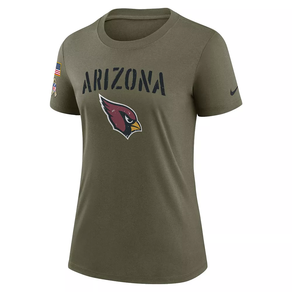 Honor our service members while supporting the Arizona Cardinals with this 2022 Salute To Service Legend T-Shirt. This Nike gear features a military-inspired color scheme, complete with an American flag and Salute To Service ribbon appliqu on the right sleeve. The crisp Arizona Cardinals graphics and camouflage details will add some much-needed spirit to your game day collection. The NFL does not profit from the sale of Salute to Service products. Charitable contributions are awarded by the NFL Foundation to the NFL’s military nonprofit partners. For more information, please visit www.NFL.com/causes/salute.