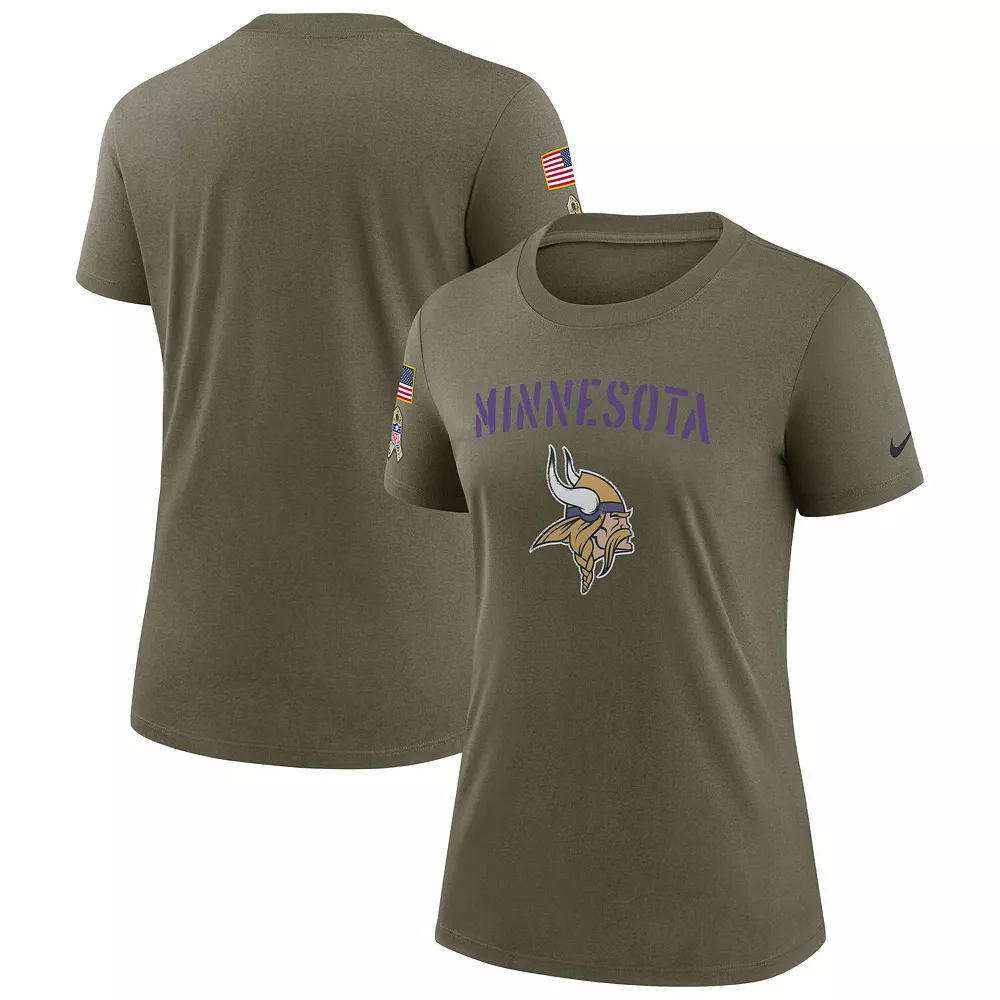 Honor our service members while supporting the Minnesota Vikings with this 2022 Salute To Service Legend T-Shirt. This Nike gear features a military-inspired color scheme, complete with an American flag and Salute To Service ribbon appliqu on the right sleeve. The crisp Minnesota Vikings graphics and camouflage details will add some much-needed spirit to your game day collection. The NFL does not profit from the sale of Salute to Service products. Charitable contributions are awarded by the NFL Foundation to the NFL’s military nonprofit partners. For more information, please visit www.NFL.com/causes/salute.