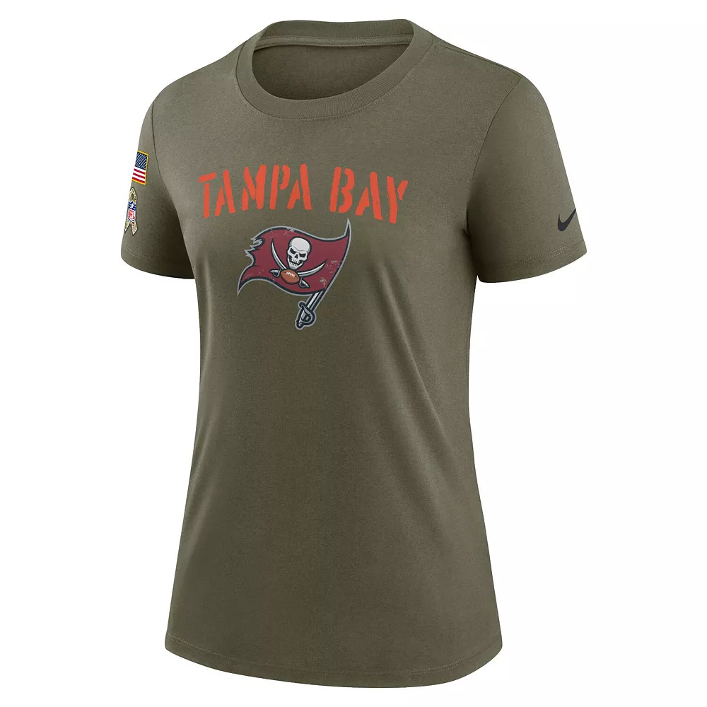 Honor our service members while supporting the Tampa Bay Buccaneers with this 2022 Salute To Service Legend T-Shirt. This Nike gear features a military-inspired color scheme, complete with an American flag and Salute To Service ribbon appliqu on the right sleeve. The crisp Tampa Bay Buccaneers graphics and camouflage details will add some much-needed spirit to your game day collection. The NFL does not profit from the sale of Salute to Service products. Charitable contributions are awarded by the NFL Foundation to the NFL’s military nonprofit partners. For more information, please visit www.NFL.com/causes/salute.