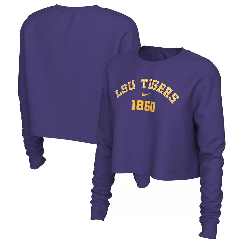 Grab a tee that makes you feel as good as watching your LSU Tigers with this Nike Est. cropped T-shirt. Soft cotton fabric and an oversized fit allow for easy movements and comfort. Bold LSU Tigers graphics complete this top for a trendy piece of fan gear.