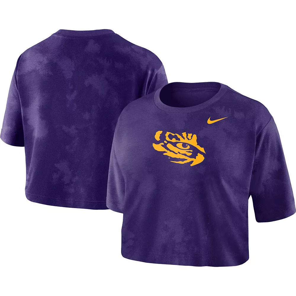 Flex your LSU Tigers spirit in a charming fashion with this Cropped T-shirt from Nike. The allover tie-dye pattern coordinates with the bold LSU Tigers graphics for a chic, spirited look. Plus, the loose fit allows the top to rest comfortably at the shoulders and waist for a cozy feel.