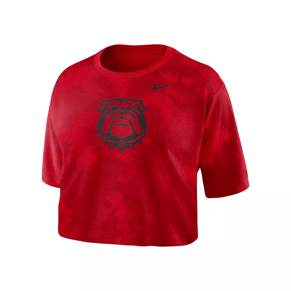 Flex your Georgia Bulldogs spirit in a charming fashion with this Cropped T-shirt from Nike. The allover tie-dye pattern coordinates with the bold Georgia Bulldogs graphics for a chic, spirited look. Plus, the loose fit allows the top to rest comfortably at the shoulders and waist for a cozy feel.