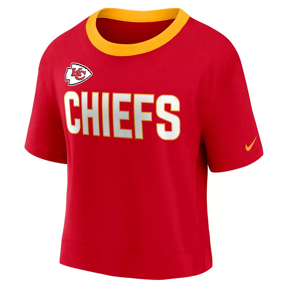 Grab a tee that makes you feel as good as watching your Kansas City Chiefs on the big screen with this Nike High Hip Fashion top. It features a cropped hem and casual fit that allows for an easy, comfortable feel. Bold Kansas City Chiefs graphics and signature colors put your fandom front and center.