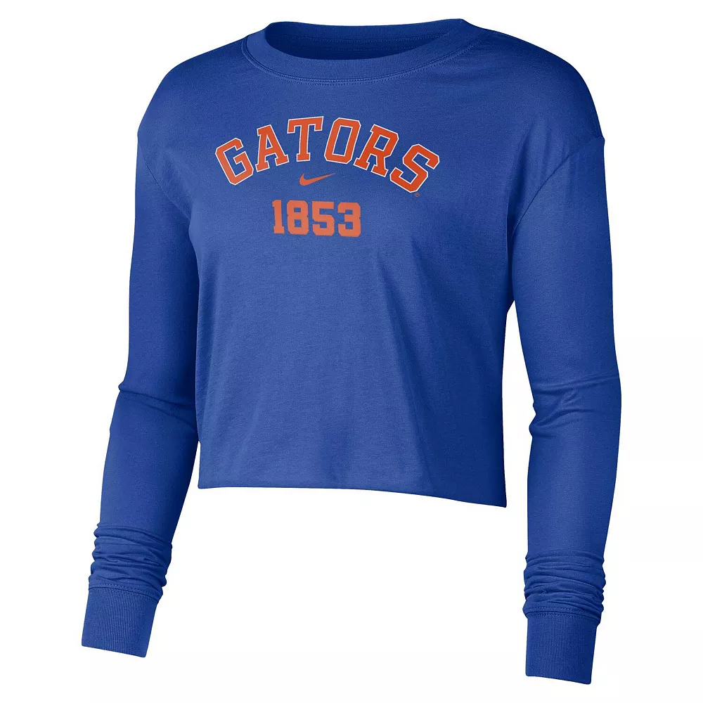Grab a tee that makes you feel as good as watching your Florida Gators with this Nike Est. cropped T-shirt. Soft cotton fabric and an oversized fit allow for easy movements and comfort. Bold Florida Gators graphics complete this top for a trendy piece of fan gear.