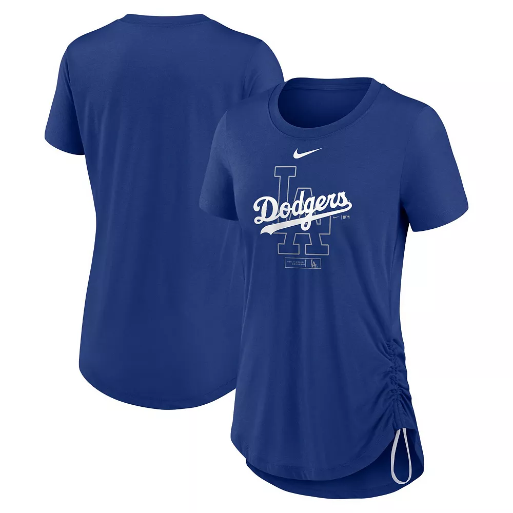 Look stylish and stay cool during the Los Angeles Dodgers season in this Side Cinch Fashion T-shirt from Nike. It features Los Angeles Dodgers graphics printed on super-soft tri-blend material. Additionally, Dri-FIT technology wicks away moisture to keep you feeling dry and comfortable.
