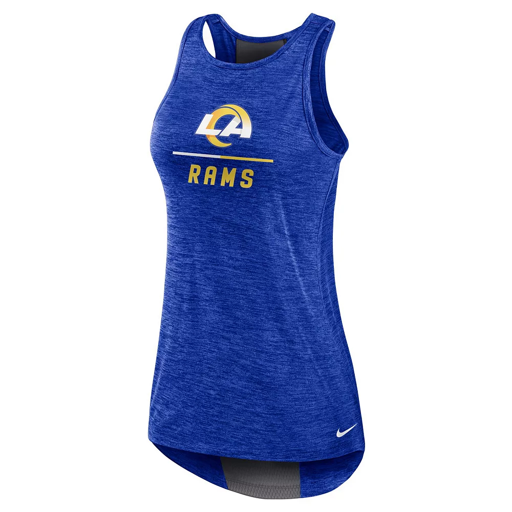 Show off your Los Angeles Rams spirit at the gym or on a run with this tank top from Nike. Designed with moisture-wicking Dri-FIT technology and a breathable back mesh panel, this shirt is perfect for active days. Plus, the stylish high neck and Los Angeles Rams details make it an ideal pick for spirited game days.