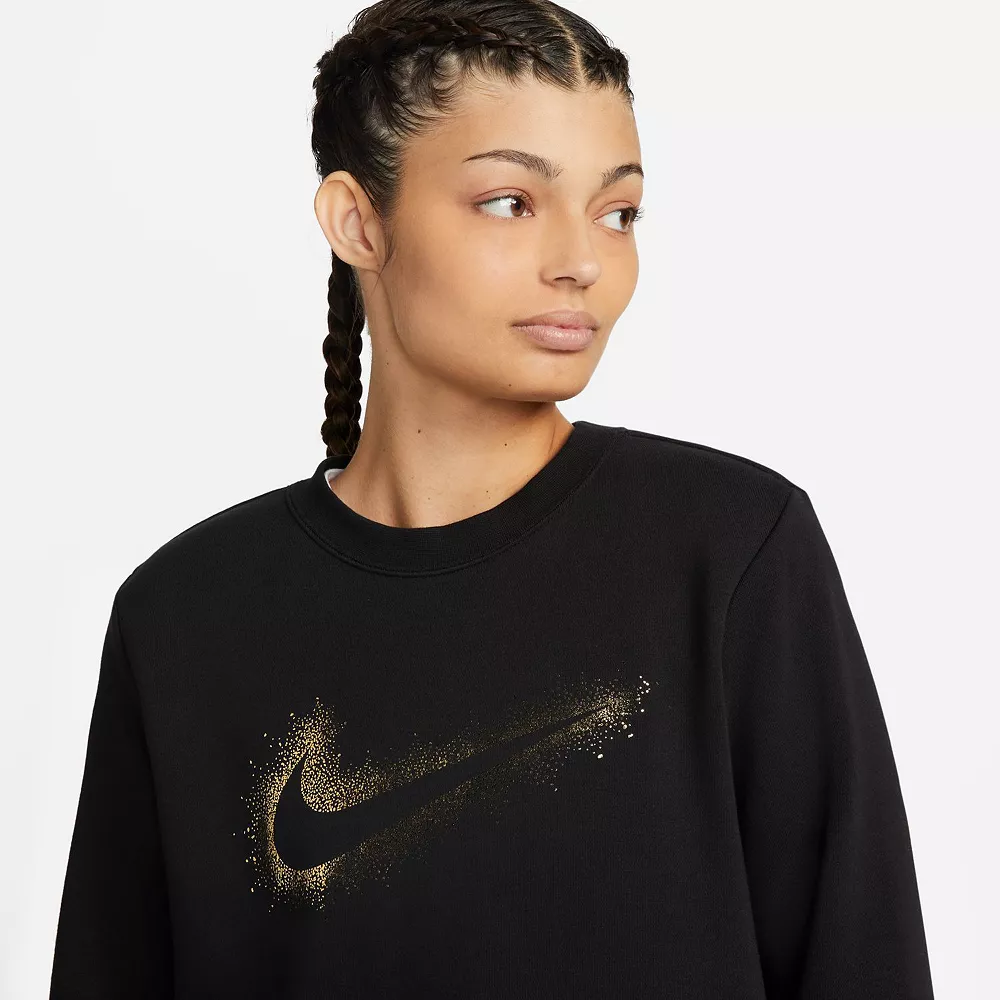 - Specks of galactic shine give shape to the Swoosh logo on this comfy crewneck