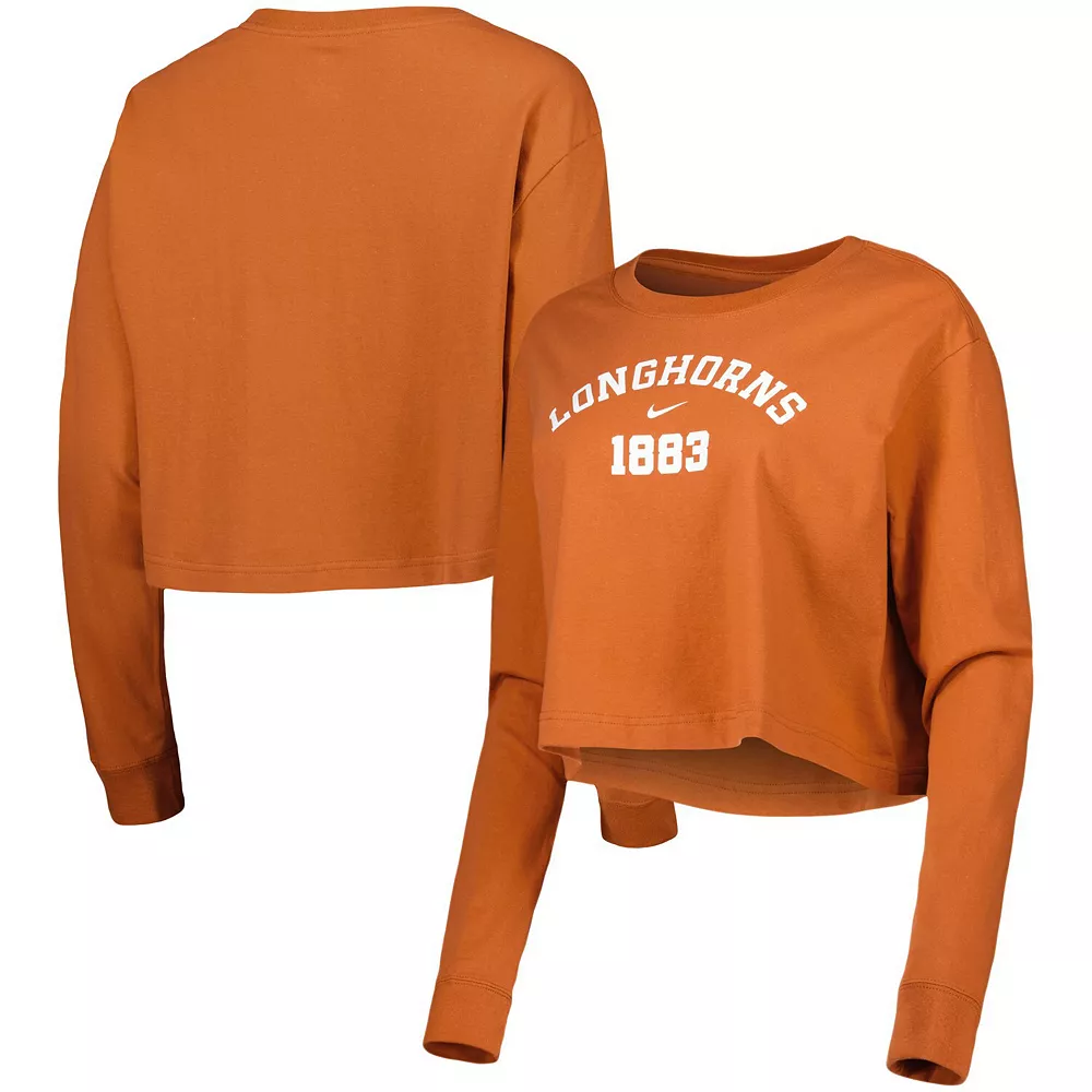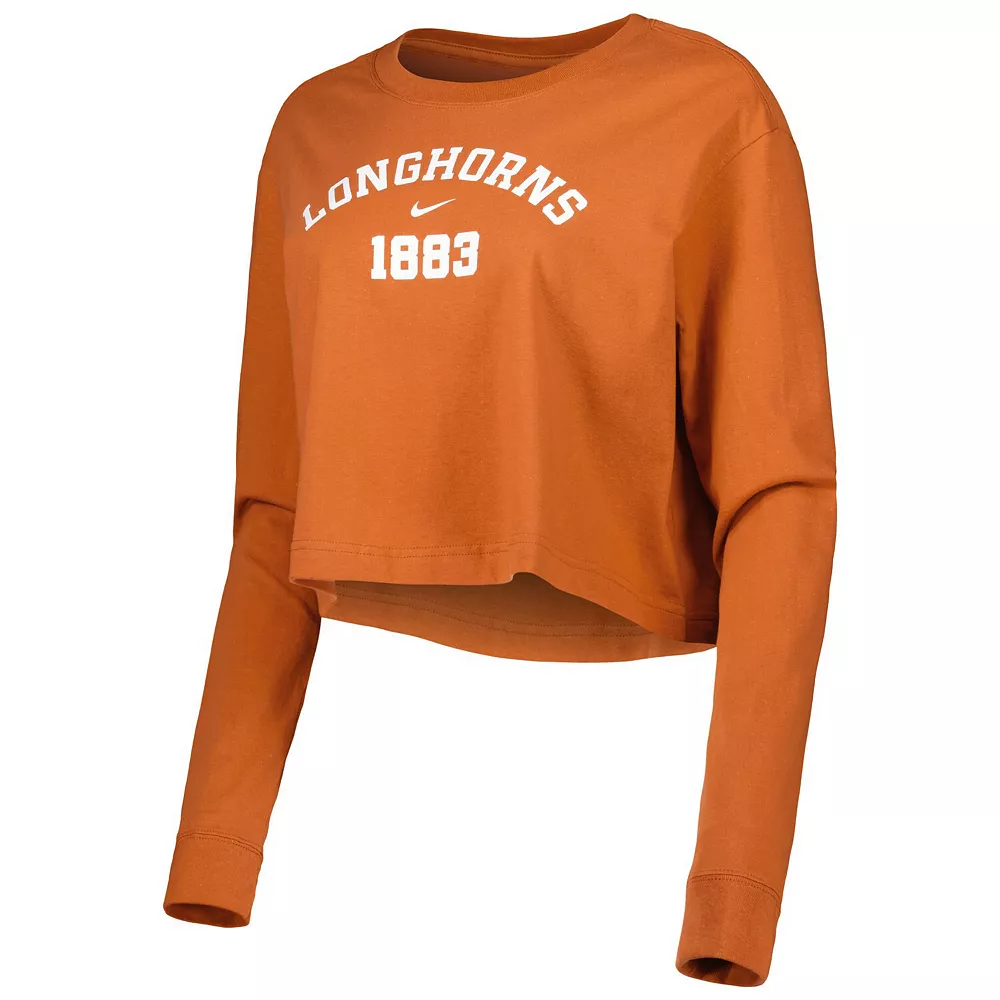 Grab a tee that makes you feel as good as watching your Texas Longhorns with this Nike Est. cropped T-shirt. Soft cotton fabric and an oversized fit allow for easy movements and comfort. Bold Texas Longhorns graphics complete this top for a trendy piece of fan gear.