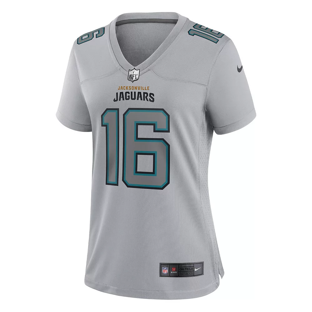 Up your Jacksonville Jaguars look with this Trevor Lawrence Atmosphere Fashion Game jersey by Nike. Its tailored fit is designed for movement, and mesh side panels ensure you stay cool and comfortable all day long. Authentic team details make this Trevor Lawrence jersey a standout piece in your Jacksonville Jaguars collection.