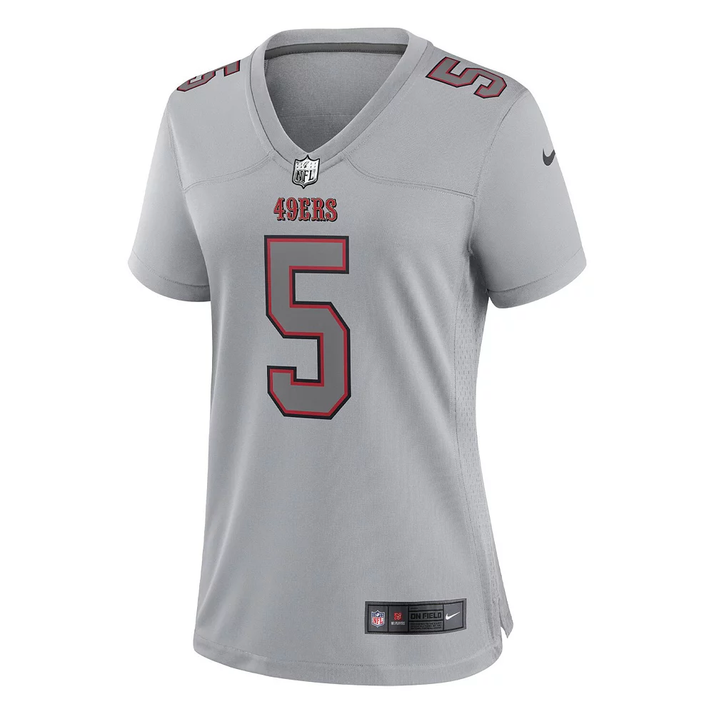 Up your San Francisco 49ers look with this Trey Lance Atmosphere Fashion Game jersey by Nike. Its tailored fit is designed for movement, and mesh side panels ensure you stay cool and comfortable all day long. Authentic team details make this Trey Lance jersey a standout piece in your San Francisco 49ers collection.