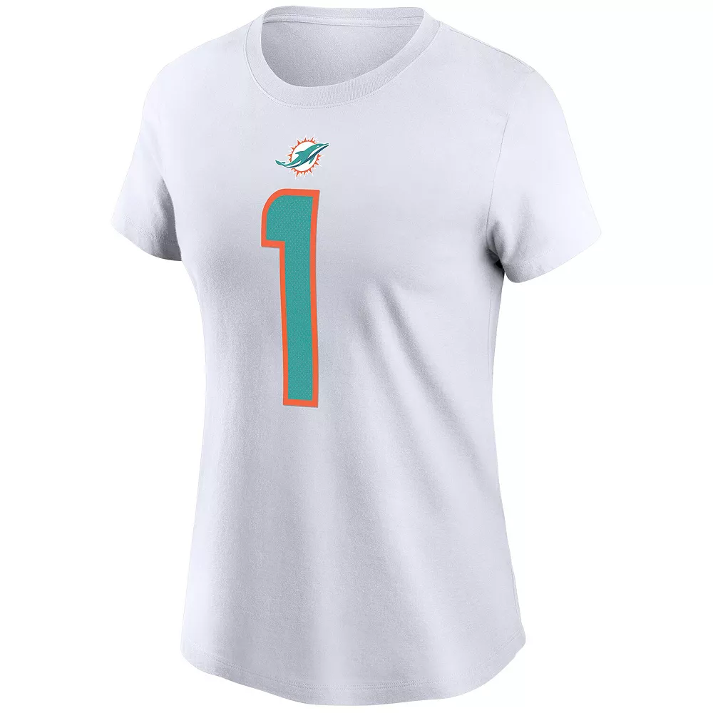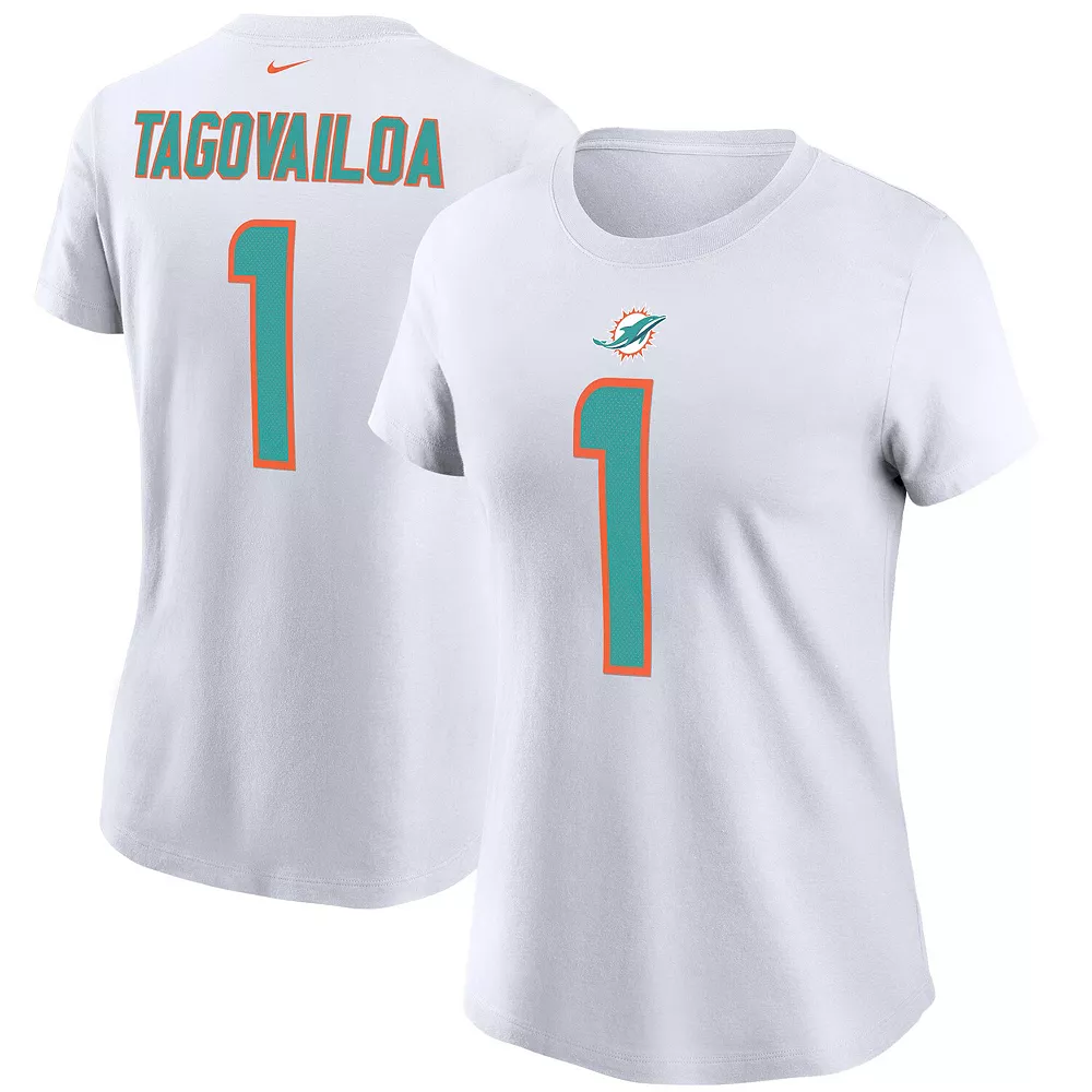 Tua Tagovailoa is consistently one of the most dominant players on the gridiron. This Name and Number T-shirt from Nike will be a strong tribute to your favorite player’s career with the Miami Dolphins. Designed as a simple alternative to the on-field jerseys, this player tee features crisp graphics on the front and back so you can proudly support your Miami Dolphins.