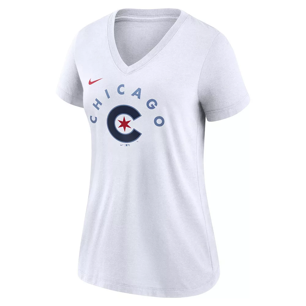 Get pumped up and ready for Chicago Cubs game day with this City Connect Tri-Blend V-Neck T-Shirt. The city’s flag has four stars, and people frequently present new ideas for the addition of a fifth. The fifth star, represented in the Cubby ”C,” would be for the beloved Cubs and their fans. Pair this Nike gear with your favorite Chicago Cubs hat for a unique look that will grab the attention of fellow fans.