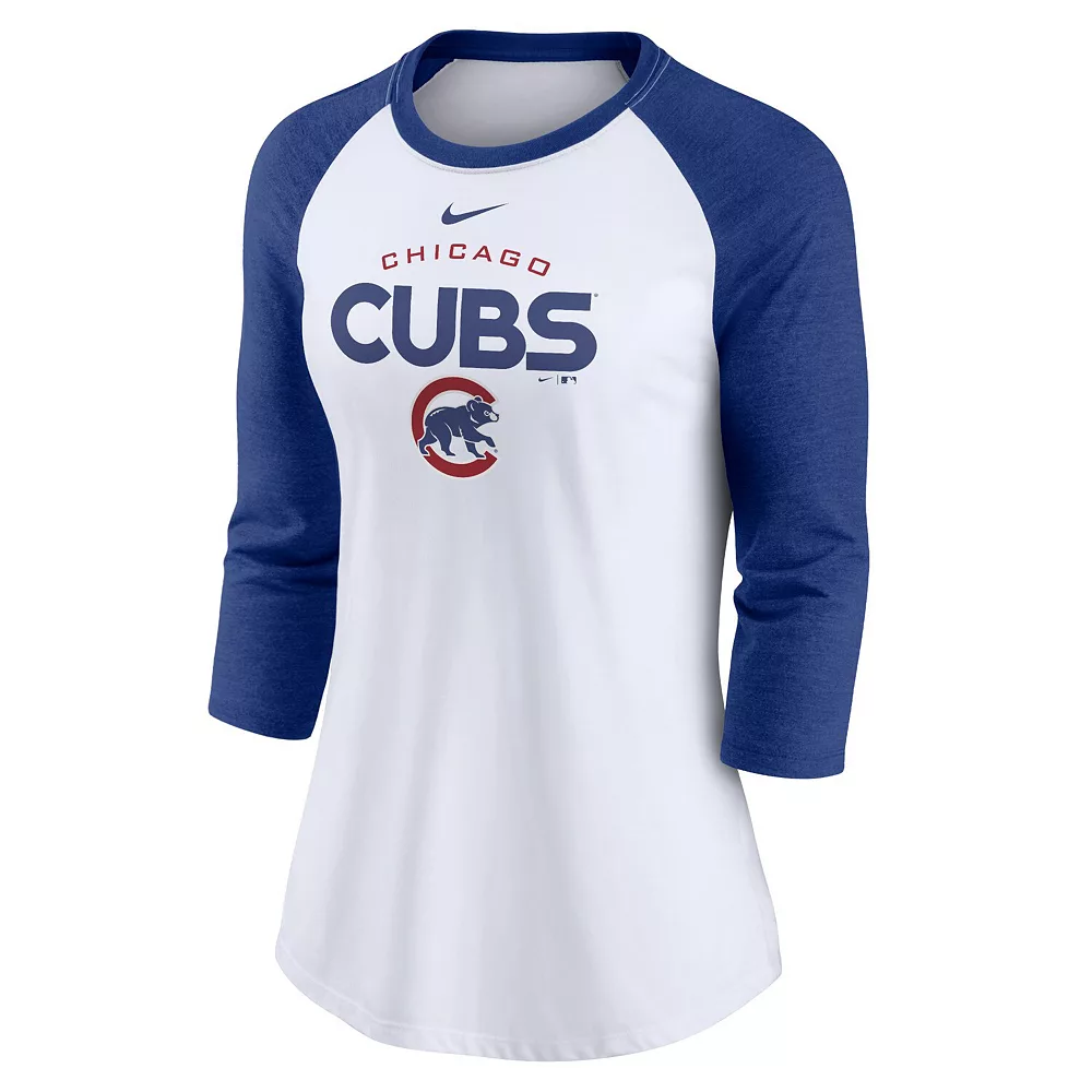 Bring attention to your Chicago Cubs fandom in this Modern Baseball Arch 3/4-Sleeve T-shirt from Nike. It features a vibrant colorway that highlights the Chicago Cubs graphics printed on super-soft tri-blend material. The contrasting raglan sleeves also provide some extra room for optimal arm movement.