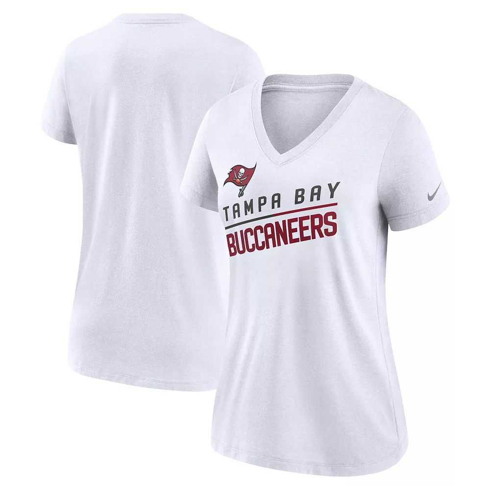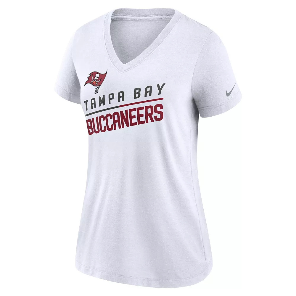 Ensure everyone knows who you want to see win on game day by wearing this Tampa Bay Buccaneers V-neck T-shirt from Nike. It features the team name in a slanted design printed below the Tampa Bay Buccaneers logo. Plus, tri-blend material gives this tee an extra-soft feel for added comfort.