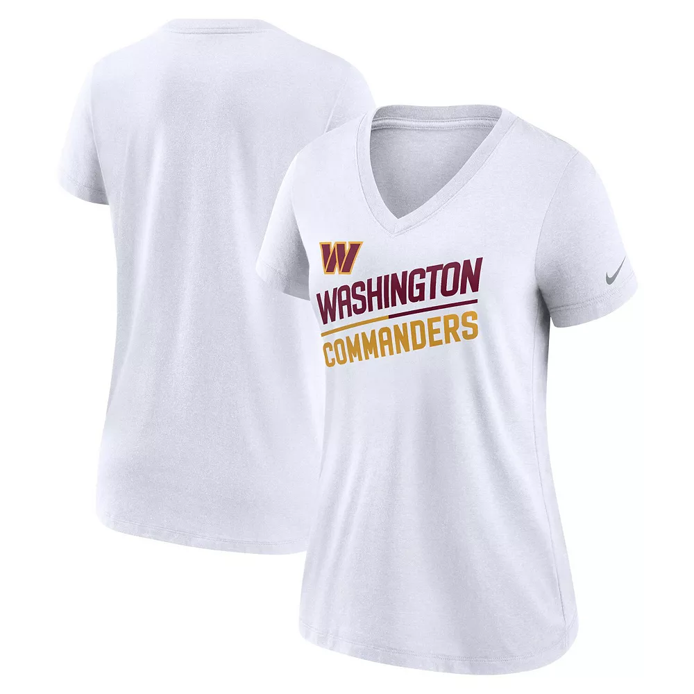 Ensure everyone knows who you want to see win on game day by wearing this Washington Commanders V-neck T-shirt from Nike. It features the team name in a slanted design printed below the Washington Commanders logo. Plus, tri-blend material gives this tee an extra-soft feel for added comfort.