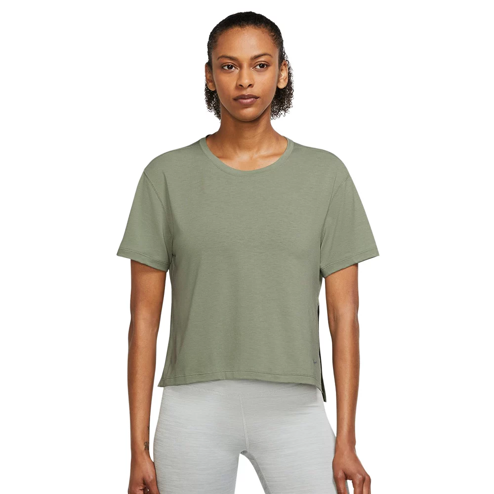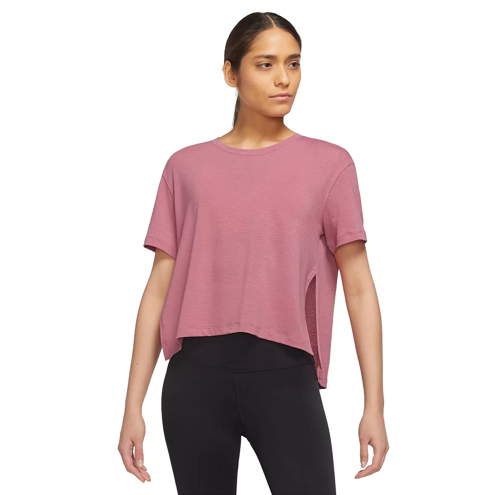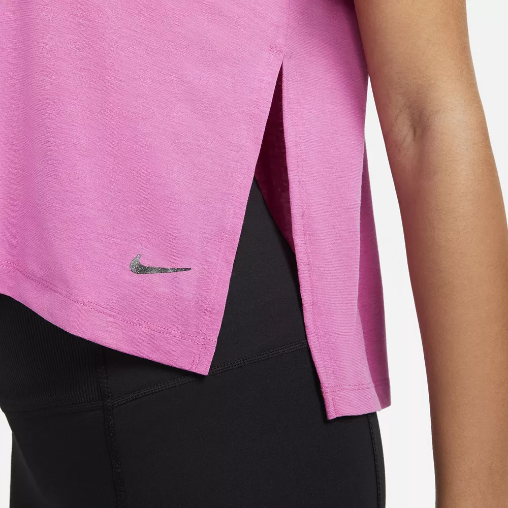 Made with soft, stretchy sweat-wicking fabric, this women’s Nike Yoga top is a breathable layer designed to keep you comfortable while you flow through your movements.